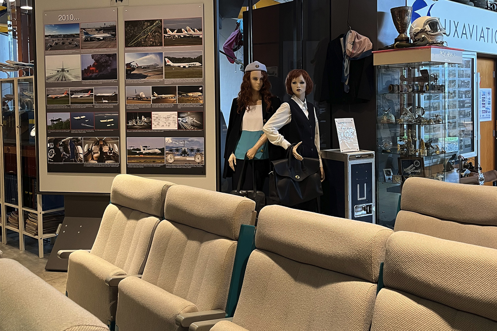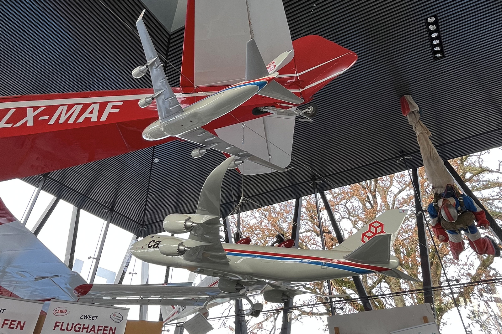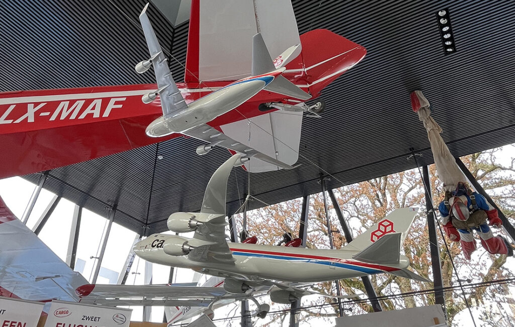 Die Ausstellung von fliegenden Maschinen, unter anderem das älteste erhaltene luxemburger Holzflugzeug, das ab 1946 im Großherzogtum geflogen ist, sowie Ultraleichtflugzeuge und der allererste luxemburger Heißluftballon.